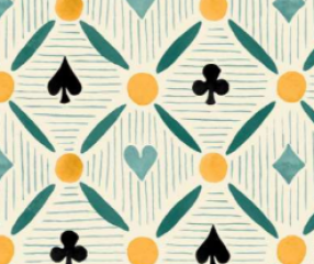 A playful design printed in two colourways, Seine pays tribute to the town of Rouen in France that first shipped these French suited playing cards to England in the 15th century.