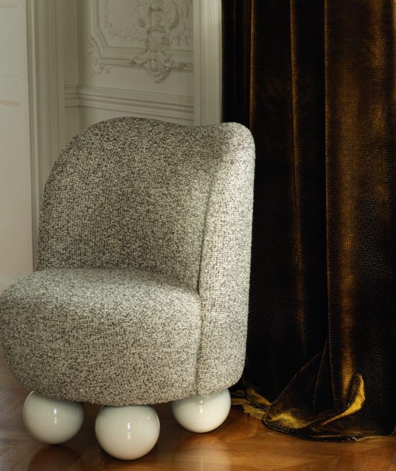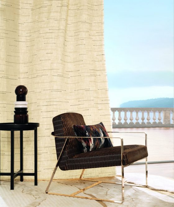 Abold, glamourous and audacious collection, inspired by the brand’s Parisian origins, taking you on a journey into the heart of luxurious fabrics, exquisite colors, fine materials and rare combinations of textures. Exquisite silks, voiles laminated with gold or silver up against large, printed, leaf-patterns on linen and geometric embroideries at the crossroads of Art Deco and Creole art. New-wool, cotton, linen, jute and bamboo enhance each of our fabrics.ivety, a delicate and enchanting fragility. The mineral materials create an atmosphere that is at once modern and timeless, the impression of a bright dream…