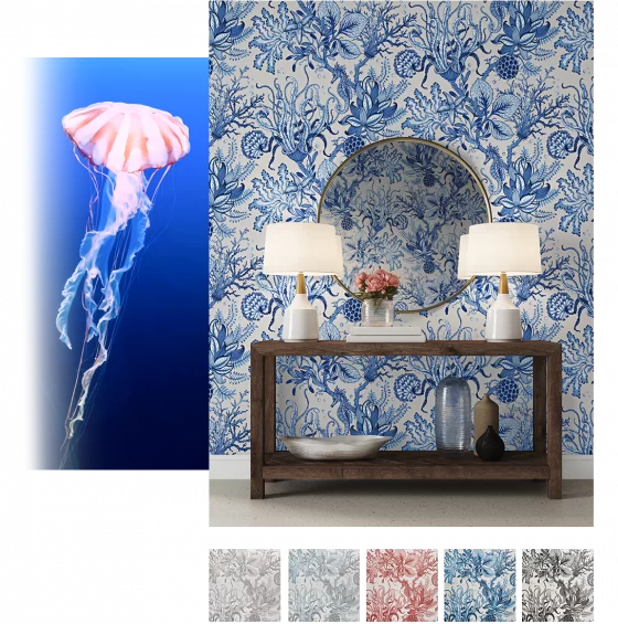 At the edge of the sea, we discover treasures that hint at life beneath the waves. Our newest collection instills a sense of wonder, calm, and discovery. From warm, welcoming naturals in calming hues to colorful underwater scenes, these designs infuse a touch of coastal charm to any space. Join us By the Sea.