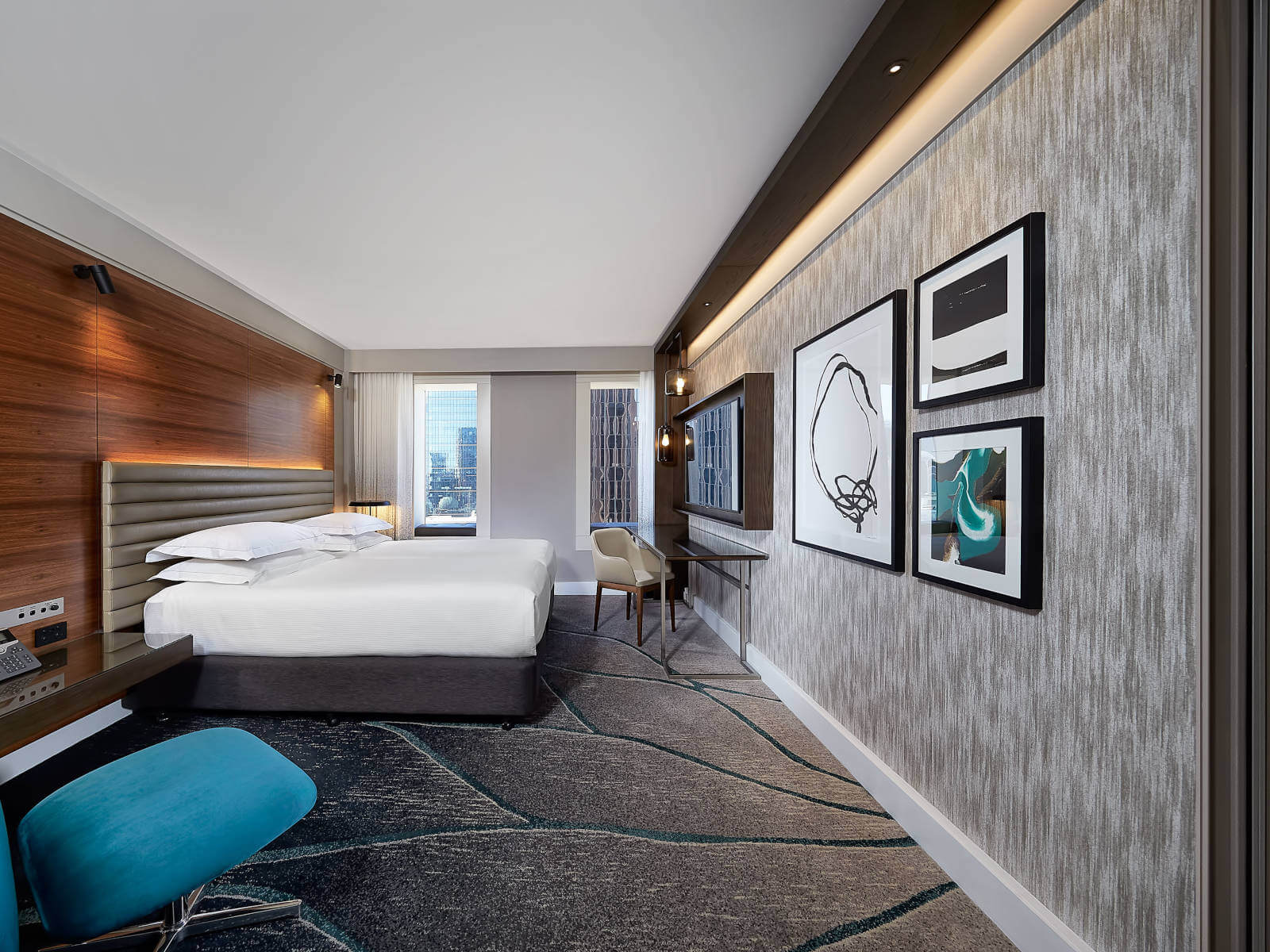 The iconic Hilton Sydney recently completed a $25 million transformation, with the guest rooms reimagined by the team at a+ design group. Featuring Phillip Jeffries wallcoverings and Sunbury Design fabrics throughout, to give travelers a sophisticated and calming experience in the heart of the city.