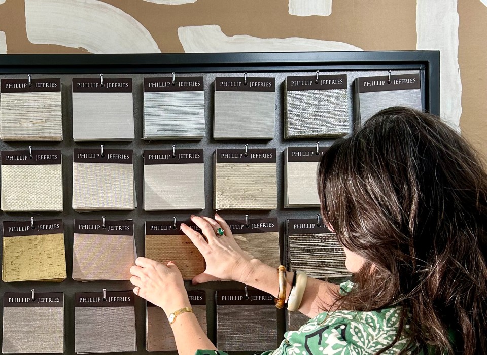 We chose the peacock blue lacquered wallcovering by Phillip Jeffries as it creates such a sensational background for the amazing Norman Seeff photogra...